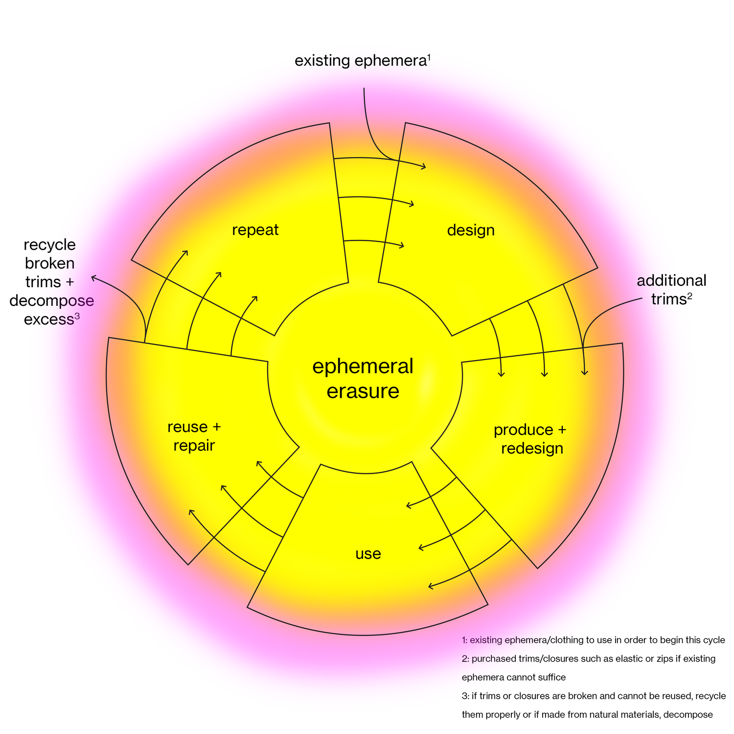 EPHEMERAL ERASURE is a circular system aimed to shift our relationship with clothing. It explores the connection between identity and consumption, creating a relational context through regenerative, slow and circular design methods to combat the current linear economic model.